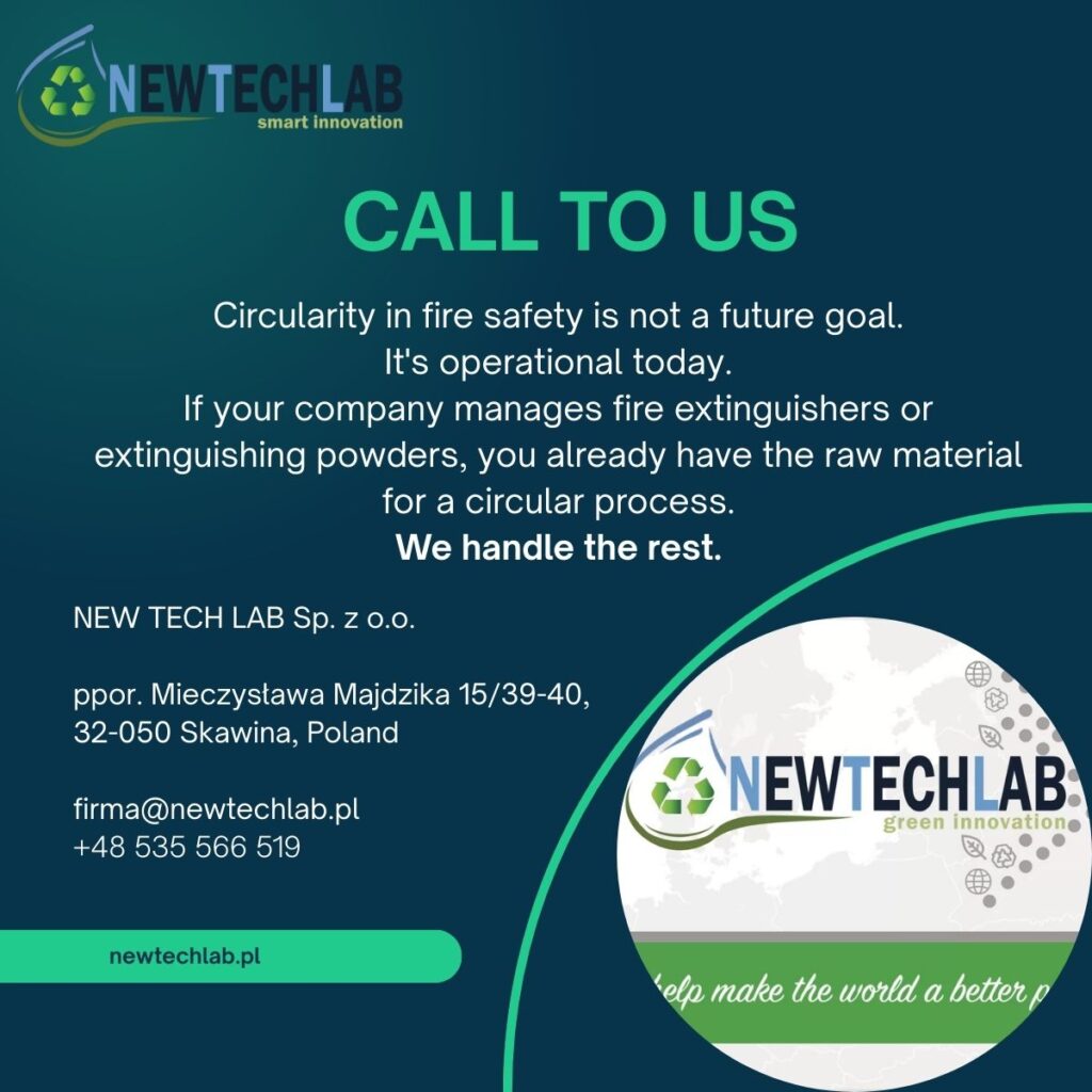 NEW TECH LAB to firma z siedzibą w Skawinie w Polsce, specjalizująca się w zbiórce, certyfikowanym transporcie, demontażu i regeneracji gaśnic oraz proszków gaśniczych.